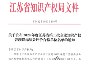 根據(jù)《江蘇省知識(shí)產(chǎn)權(quán)局關(guān)于做好2020年度江蘇省企業(yè)知識(shí)產(chǎn)權(quán)管理標(biāo)準(zhǔn)化工作的通知》(蘇知發(fā)[2020]38號(hào)), 按照國(guó)家標(biāo)準(zhǔn)《企業(yè)知識(shí)產(chǎn)權(quán)管理規(guī)范》( GB/T 29490 -2013)組織開(kāi)展了貫標(biāo)績(jī)效評(píng)價(jià)。江蘇弗瑞仕環(huán)保科技有限公司榮獲了2020年度江蘇省第二批企業(yè)知識(shí)產(chǎn)權(quán)管理貫標(biāo)績(jī)…
